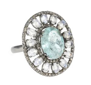 3128. *Bague sertie d'une aigue-marine taille ovale facetée entourée d...