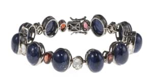 3129. *Bracelet serti de sodalites taille cabochon alternées de grenat...