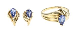 3137. Lot d'une bague et de clous d'oreilles godronnés sertis de tanza...