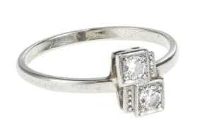 3140. Bague sertie de deux diamants en toi et moi stylisé