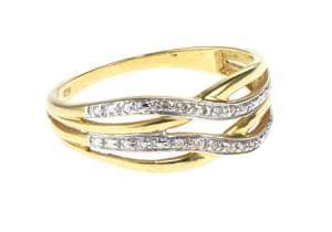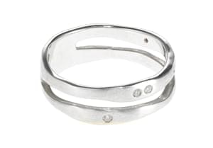 3150. *Bague ajourée stylisée rehaussée de deux lignes de diamants
