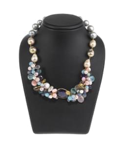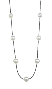Ponctué de perles d'eau douce blanches, grises et noires, altern...