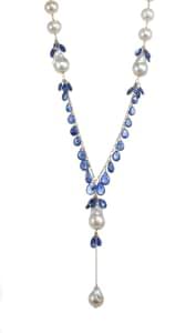 3153. *Sautoir à maille ovale serti de perles d'eau douce blanches et...