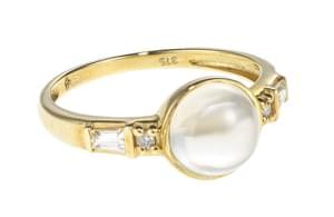 3155. *Bague sertie d'une pierre de lune taille cabochon ronde épaulée...