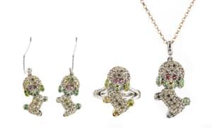 Motif de petit chien sertis de saphirs multicolores, argent 925,...