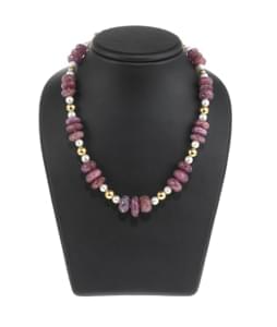 3159. *Collier composé de disques de rubis facettés alternés de perles...