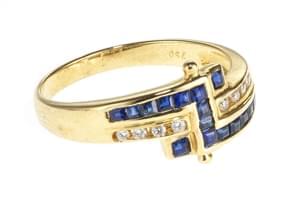3160. *Bague géométrique sertie de saphirs calibrés rehaussés de ligne...