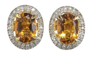 3164. *Clous d'oreilles sertis de citrines taille ovale (env. 1 ct) en...
