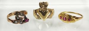L'une à motif de mains retenant un cœur, l'une sertie d'un rubis...