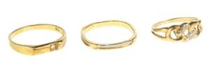 Or 750 et 585, doigt 52-12 et 56-16, 4 g. On joint une bague en...