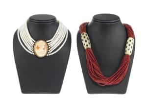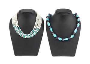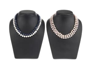 L'un composé de deux rangs de perles blanches et grises, l'autre...