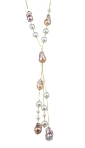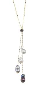 Retenant un pompon serti de quatre perles baroque blanches et gr...