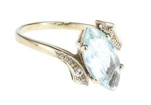 3182. *Bague sertie d'une aigue-marine taille marquise (env. 1 ct) épa...