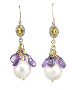 Retenant chacun une perle (D env. 13 mm) rehaussée de briolettes...