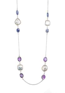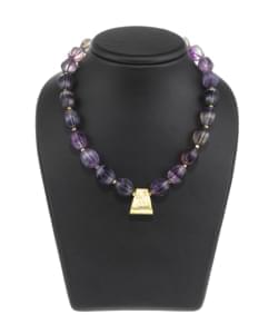 3107. *Collier composé de perles facettées d'améthystes, de jaspe viol...