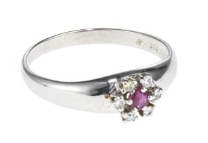 3191. *Bague fleur sertie d'un rubis entouré de diamants
