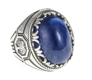 3197. *Bague-chevalière sertie d'un saphir taille cabochon (env. 15 ct...