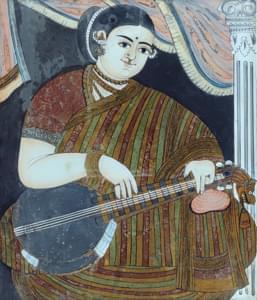 Joueuse de cithare, peinture sous verre, 40x34 cm