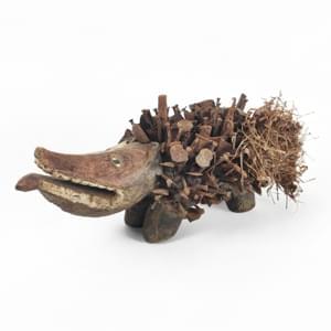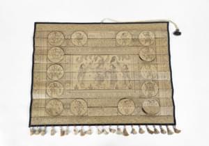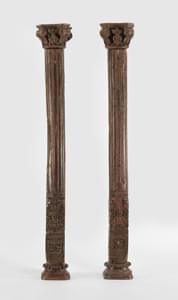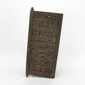 Bois sculpté à motifs de personnages et animaux sur quatre regis...