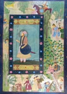 Maharaja à la lance et au bouclier, gouache sur soie, 96x69 cm