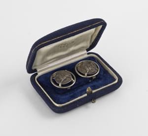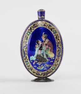 Argent et émail polychrome à motif d'un couple sur fond bleu nui...