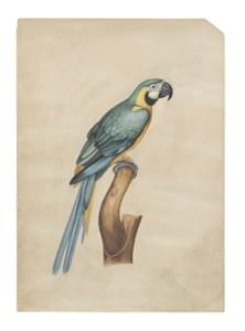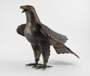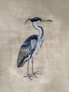 Calligraphie en forme d'oiseau, or et pigments sur papier, 20x30...