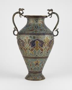Cuivre et émail polychrome à motif floral, H 56 cm