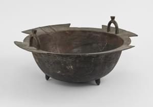 5438. Grand chaudron tripode à panse hémisphérique munie de quatre ail...