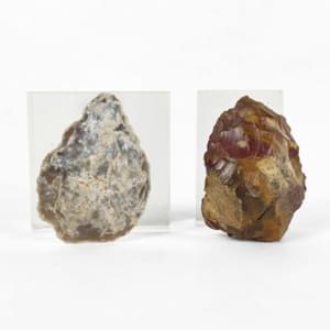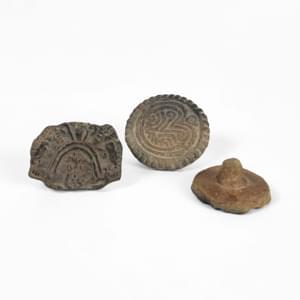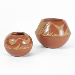 Céramique lustrée rouge et gravée, H 4,5 et 7 cm