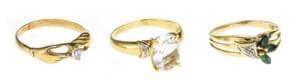 L'une centrée d'une pierre d'imitation pour l'émeraude rehaussée...