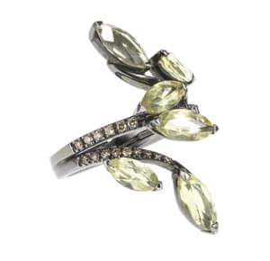 3305. Bague sertie de prasiolites taille marquise rehaussées de diaman...