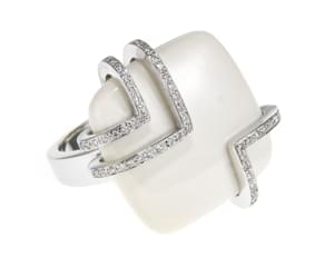 3306. Bague design sertie d'un jaspe blanc retenu par des motifs de ch...