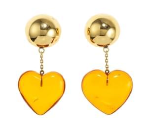 3308. Clips d'oreilles demi-sphère retenant des cœurs en ambre