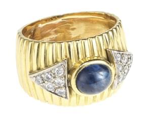 3311. Bague godronnée sertie d'un saphir taille cabochon (env. 1,5 ct)...