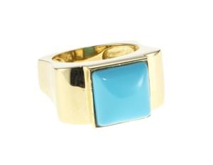 3314. Bague sertie d'une turquoise taille cabochon carré
