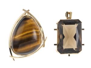 L'un serti d'un quartz fumé taille rectangle (env. 90 ct), l'aut...