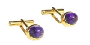 3322. Boutons de manchette sertis d'améthystes taille cabochon (env. 6...