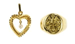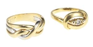 L'une à motif de deux mains retenant un petit diamant, la deuxiè...