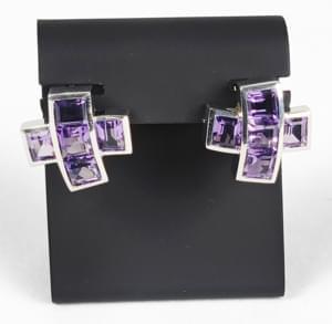 3337. Clips d'oreilles à motif de croix stylisées serties d'améthystes