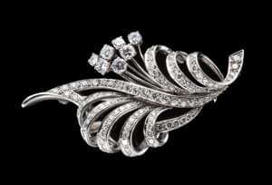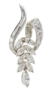 3367. Broche feuillagée ajourée à motif de volutes serties de diamants...