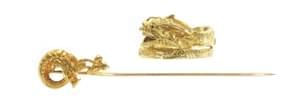 3350. Lot d'une épingle et d'une bague à motif d'un dragon