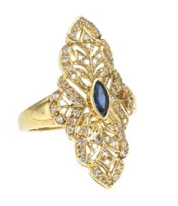 3353. *Bague marquise ajourée centrée d'un saphir taille navette entou...