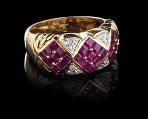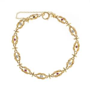 3359. Bracelet à maille entrelacée sertie de diamants et de rubis en a...