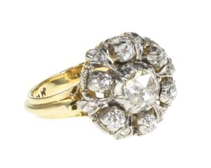 3363. Bague fleur centrée d'un diamant taille rose entouré de diamants...