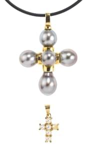 3369. Pendentif à motif de croix sertie de diamants (env. 1,5 ct) rete...