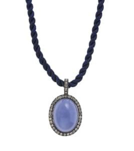 3371. *Pendentif serti d'une agate bleue taille cabochon ovale entouré...