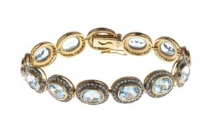 3372. *Bracelet serti de topazes bleues taille ovale (env. 25 ct) ento...