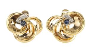 3374. Clips d'oreilles stylisés sertis de saphirs taille brillant reha...