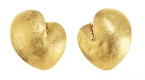 3381. Clips d'oreilles à motif de cœurs stylisés sertis de saphirs ros...