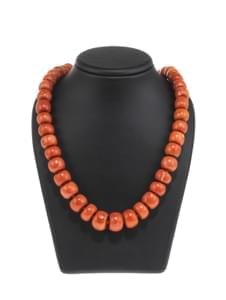 3382. Collier de perles de corail en chute terminé par un fermoir ouvr...